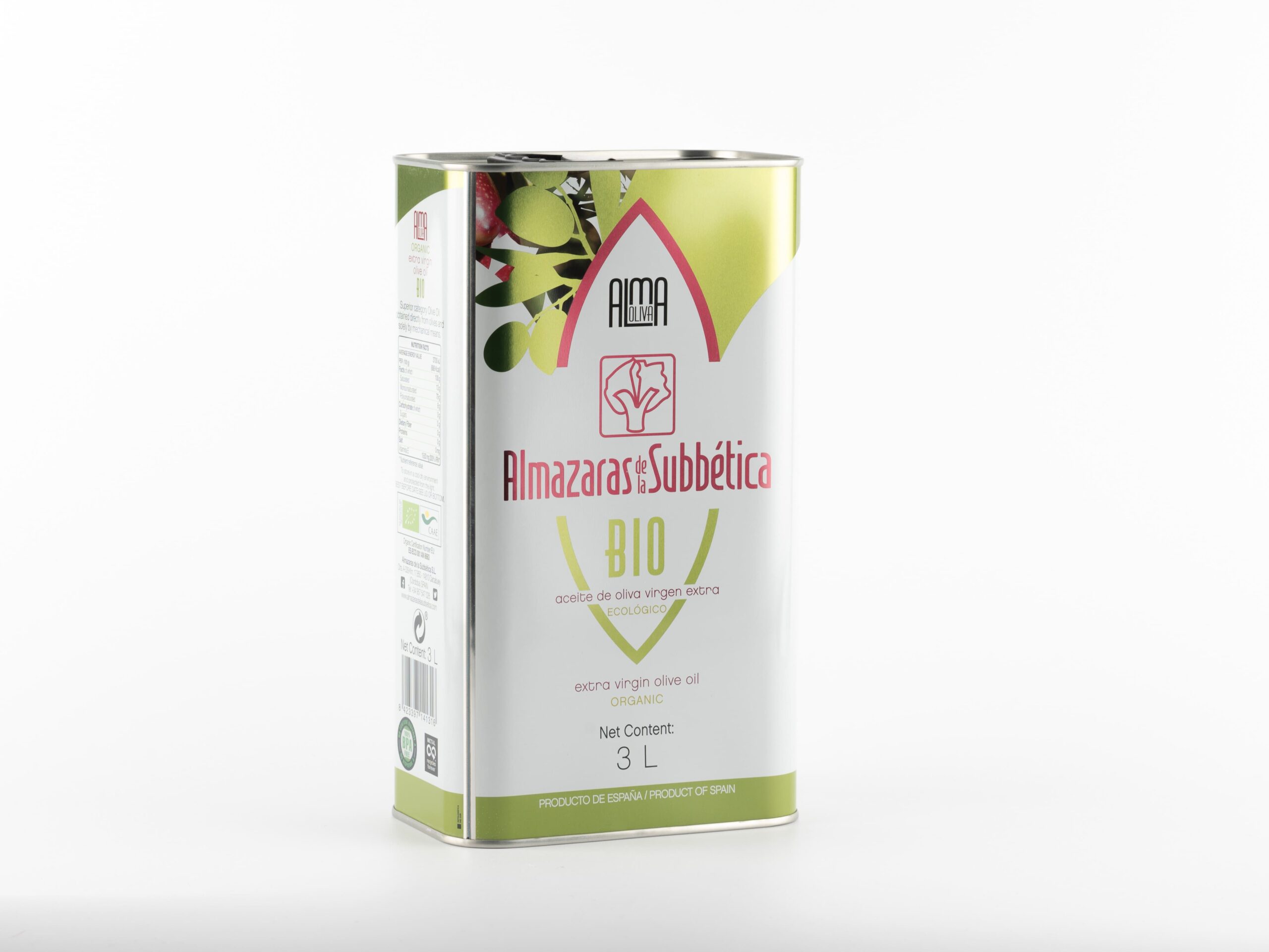 Almaoliva BIO is an organic extra virgin olive oil, ideal for those who value respect for the environment without giving up flavor. It is a coupage of Picudo, Picual, and Hojiblanca, with a sensory profile that combines green and ripe notes. On the palate, it offers a sweet touch at the beginning, followed by green almond, bitterness, and spiciness of medium-high intensity. Its balance and harmony make it a perfect EVOO to enjoy raw in salads, meats, blue fish, and gourmet toasts.